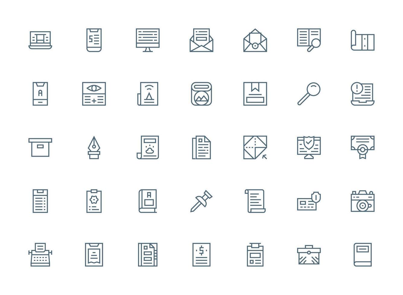 35 Icons for Document in Regular Clean Line Format Balanced Icon Set for Functional Design vector