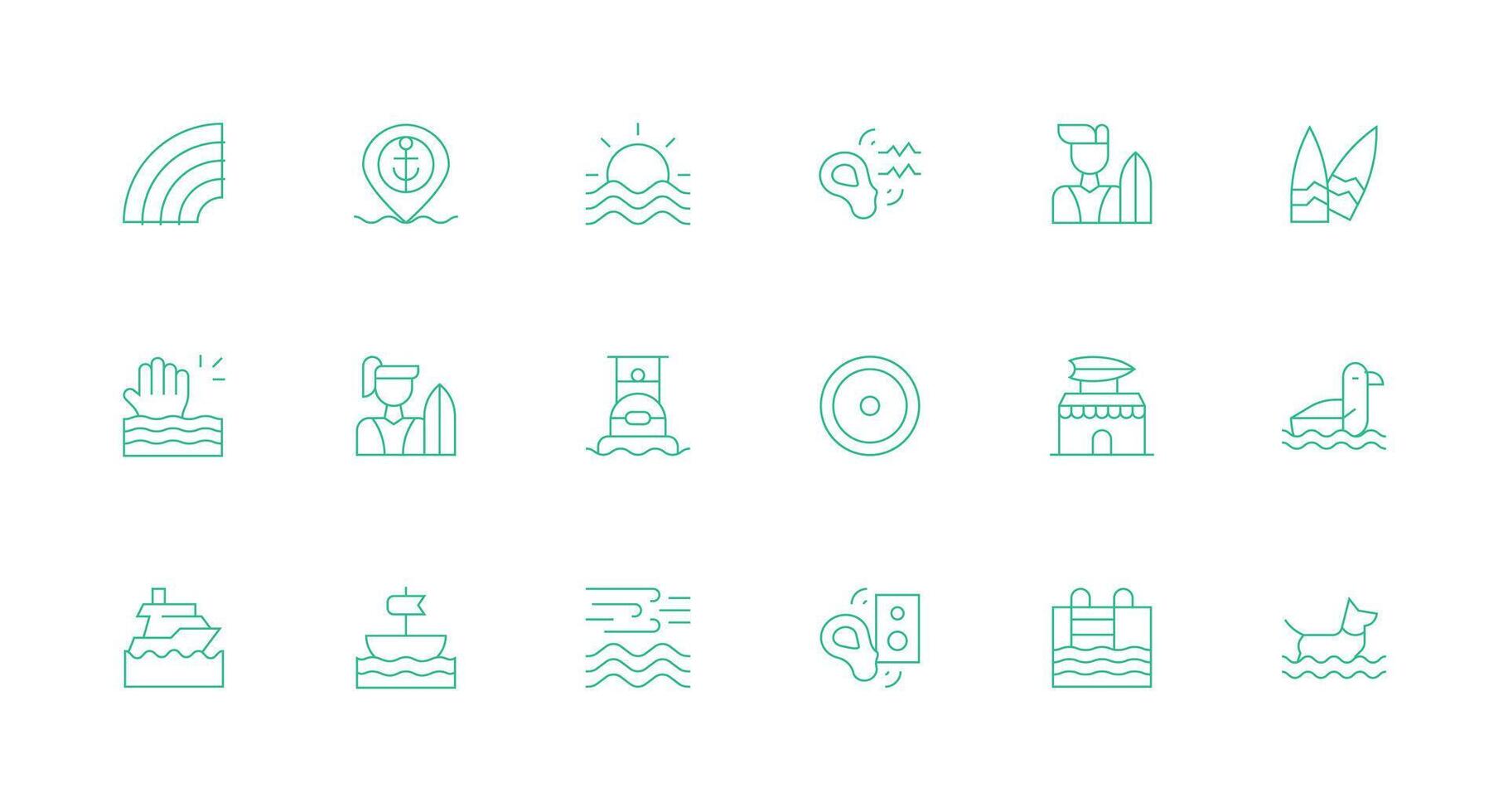 Waves Design Icons featuring 18 in Minimal Line Style Core Icon Collection for Daily Tasks vector