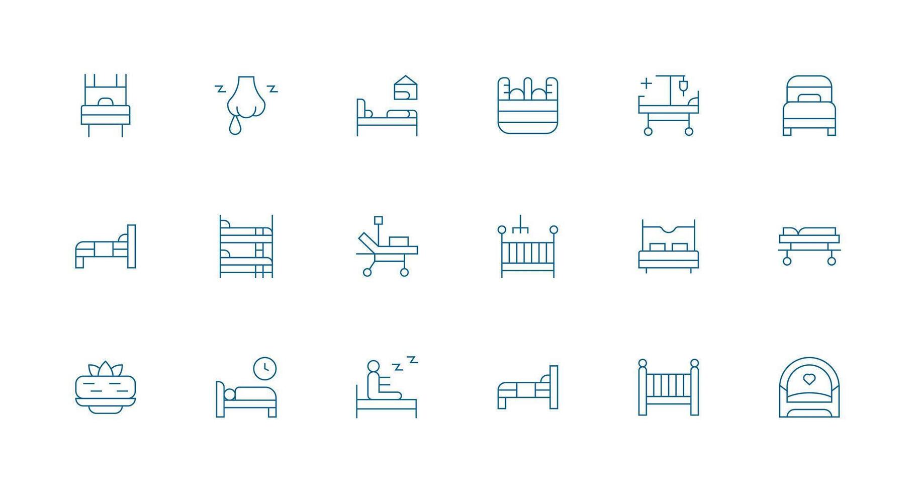 Bed featuring 18 Icons in Minimal Line Design Simple Icons for Interface and Wireframes vector
