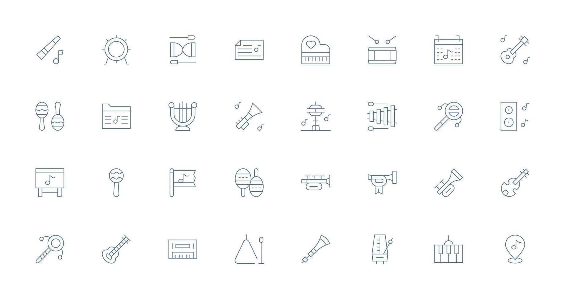 Musical Visual Pack containing 32 Thin Line Icons Minimal Icon Set for Interface Projects vector