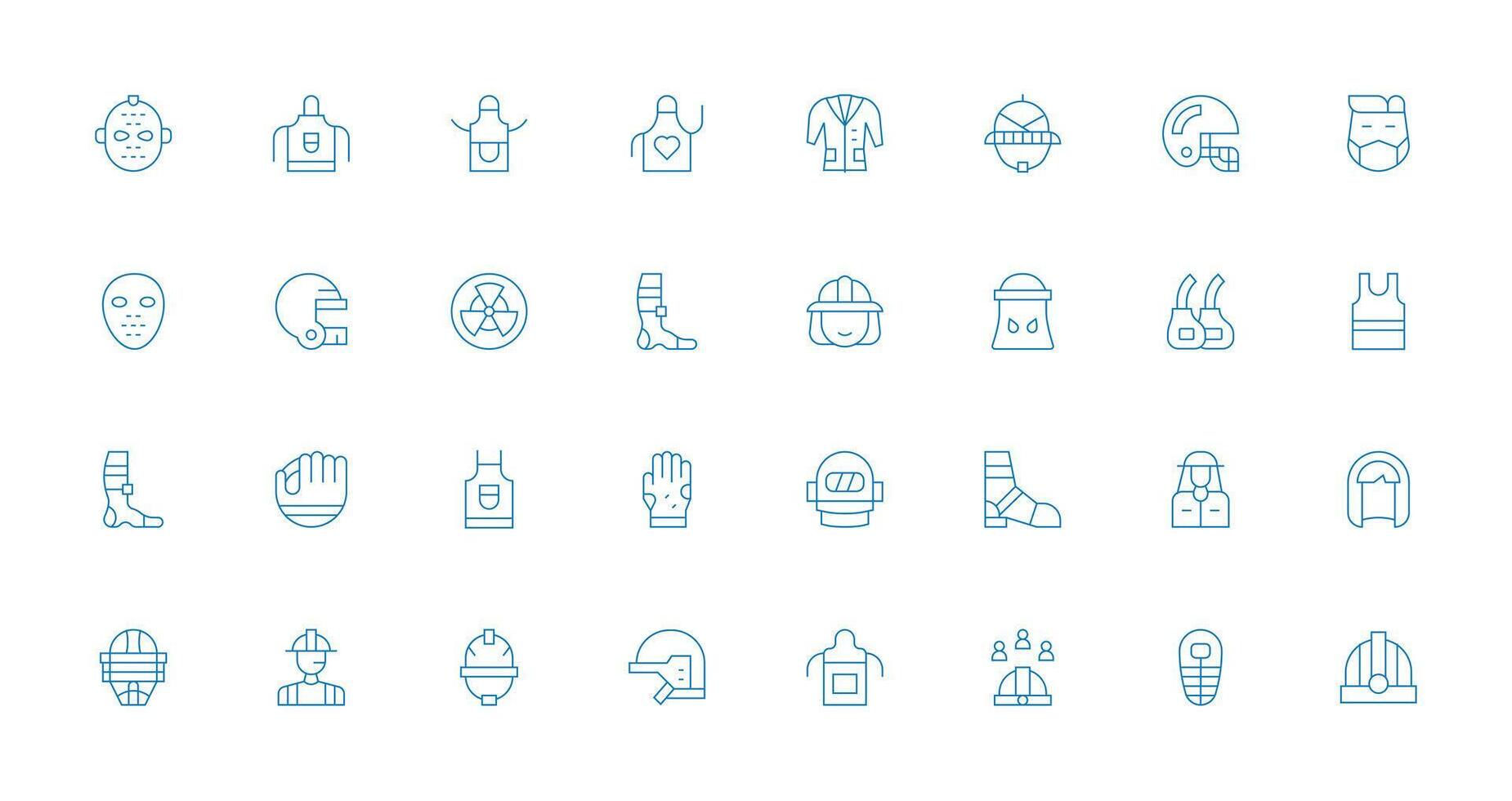 Protective Gear including 32 Thin Line Illustrations Flexible Icon System for Web Interfaces Free Vector