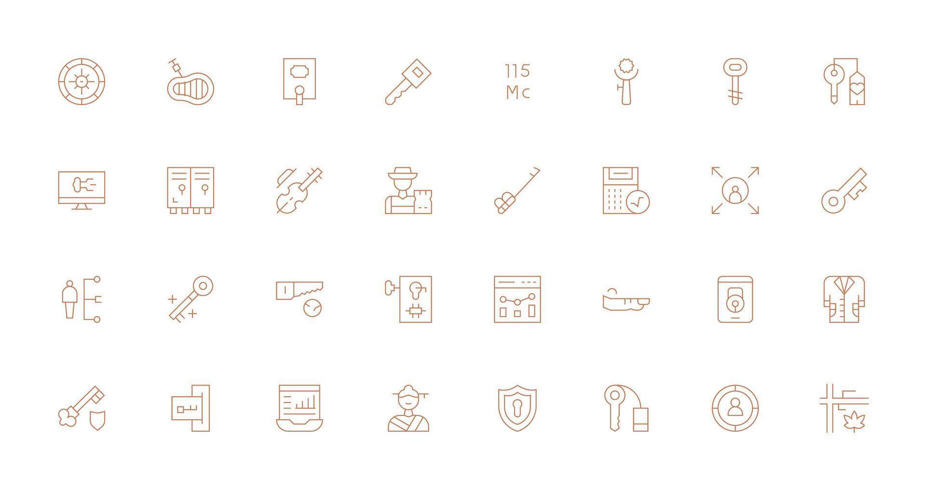 Key Icon Collection with 32 Thin Line Designs Sharp Icons for Presentations vector