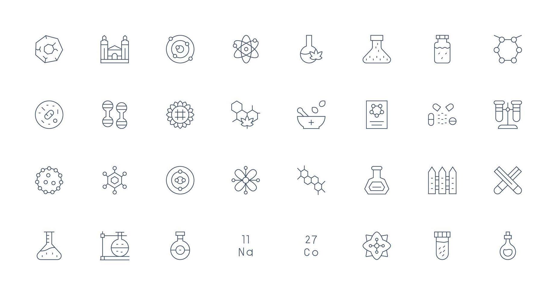 32 Icons for Compound in Thin Line Format Fully Editable Icon Set for Web vector