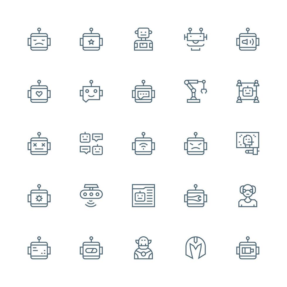 Robot Icon Set with 25 Medium Stroke Outline Graphics Fully Editable Icon Set for Web Free Vector