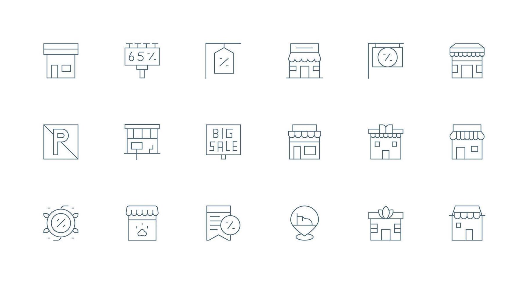 Retail Store featuring 18 Icons in Minimal Line Design Web Icon Collection Free Vector