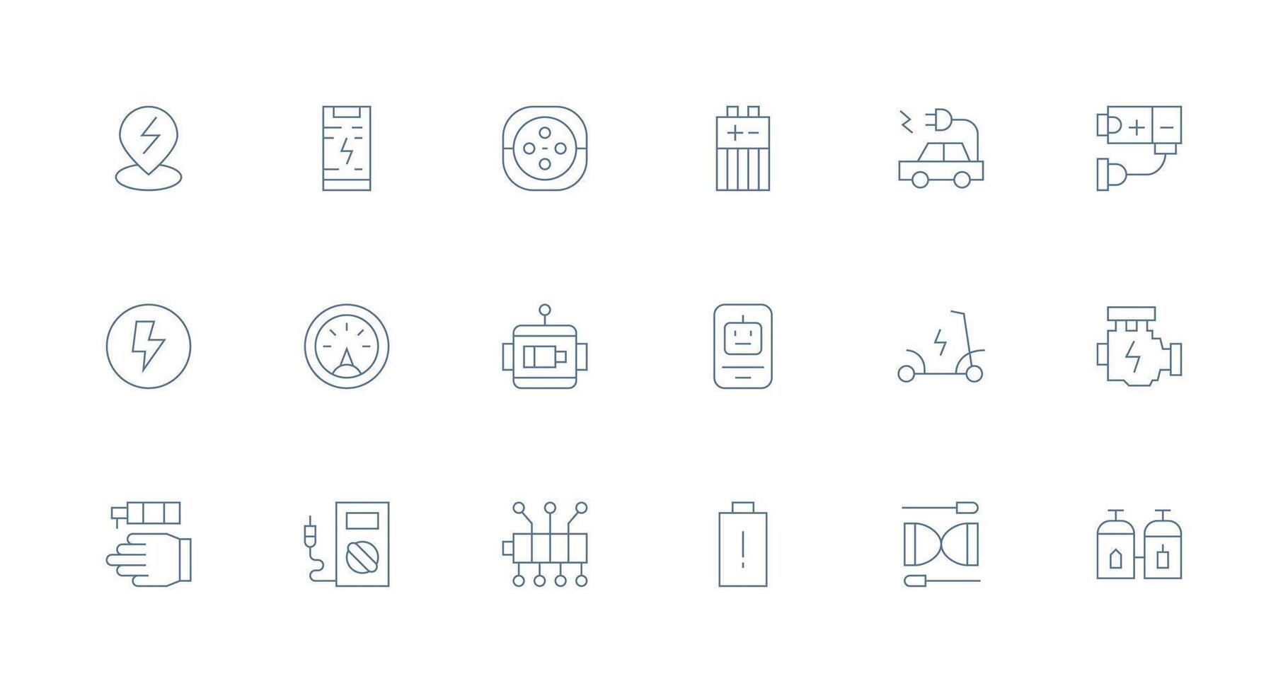 Battery Set with 18 Minimal Line Icons Essential Icons for Rapid UI Building Free Vector