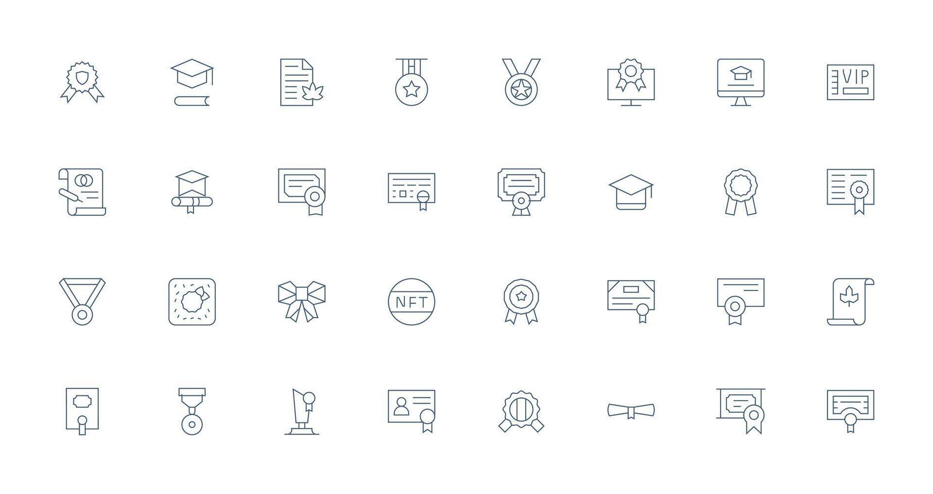 Thin Line Icons from Certificate Set with 32 Vectors Customizable Icon Series for Mobile Screens Free Vector