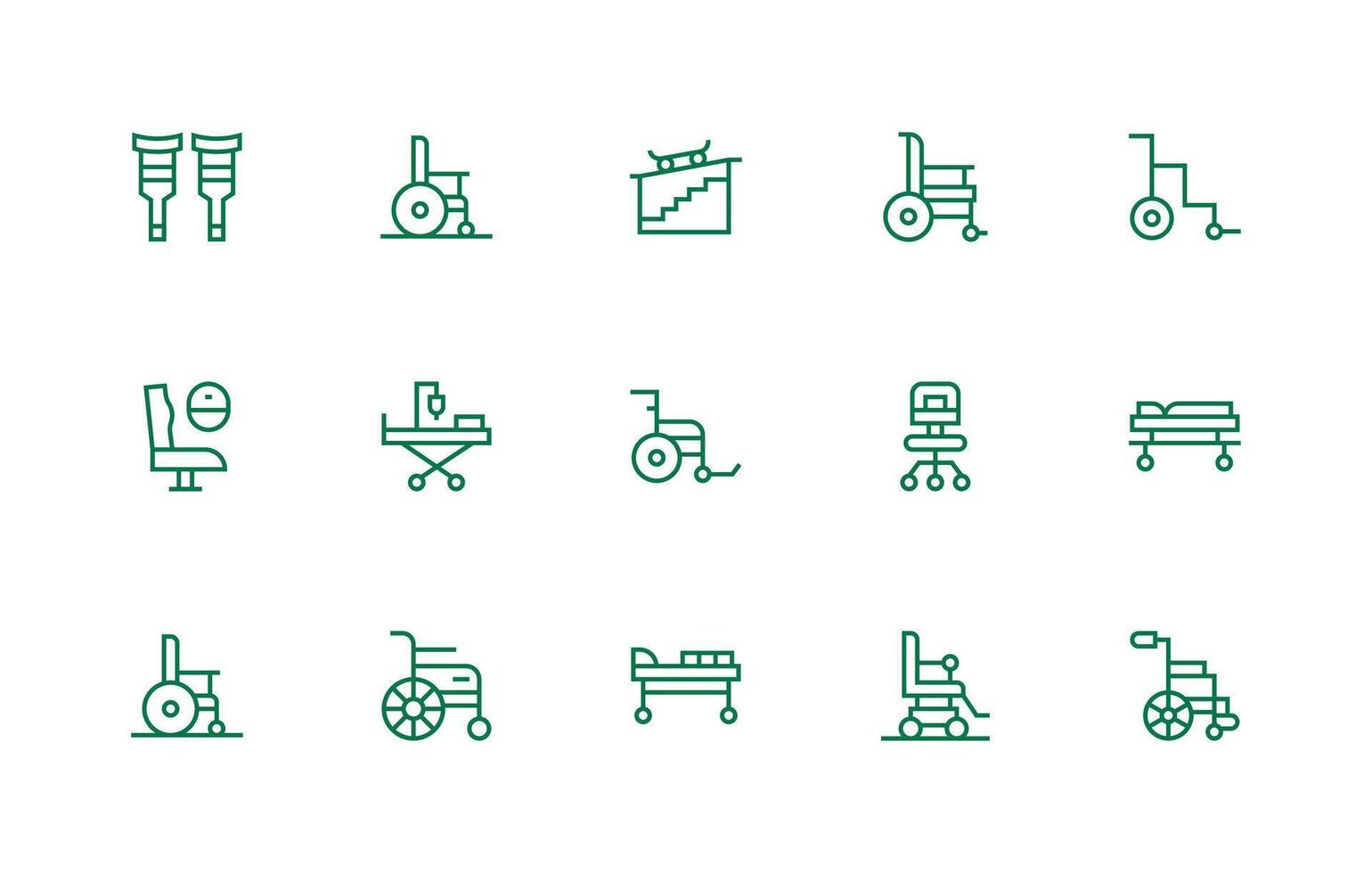 Wheelchair Design Icons featuring 15 in Regular Line Style Clean Icon Set Icon Pack for UI Projects vector