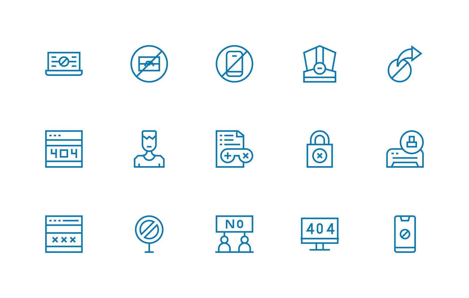 Access Denied Icon Set with 15 Regular Line Graphics Professional Icon Set vector