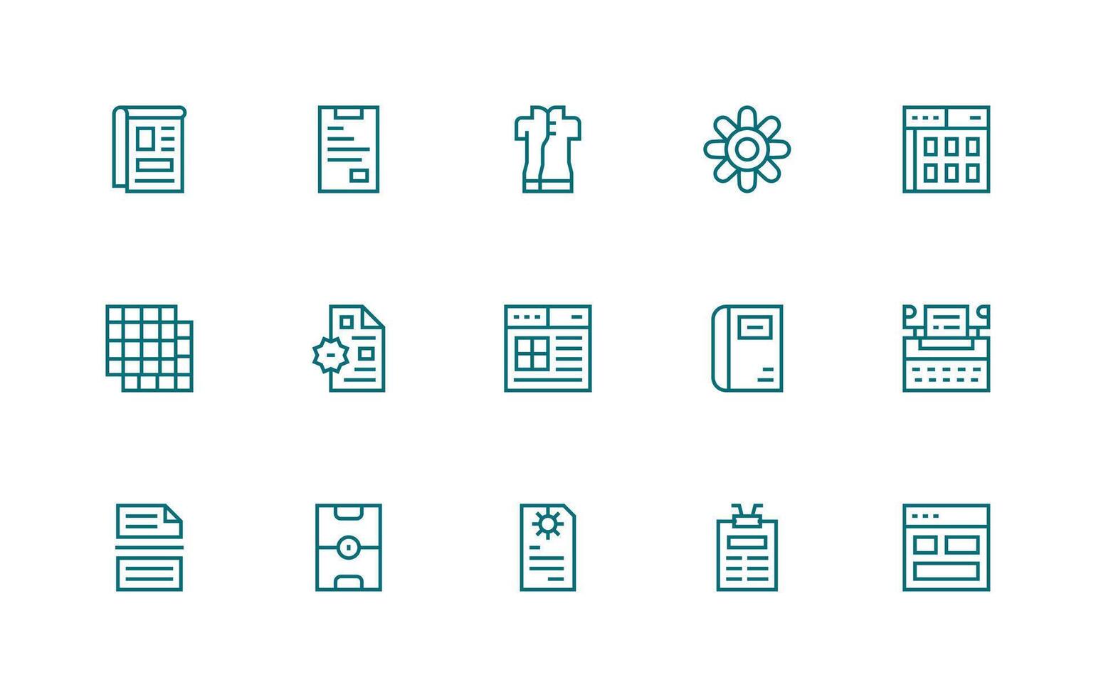 Template Icon Set with 15 Regular Line Graphics Simplified Icon Pack for Visual Tools vector
