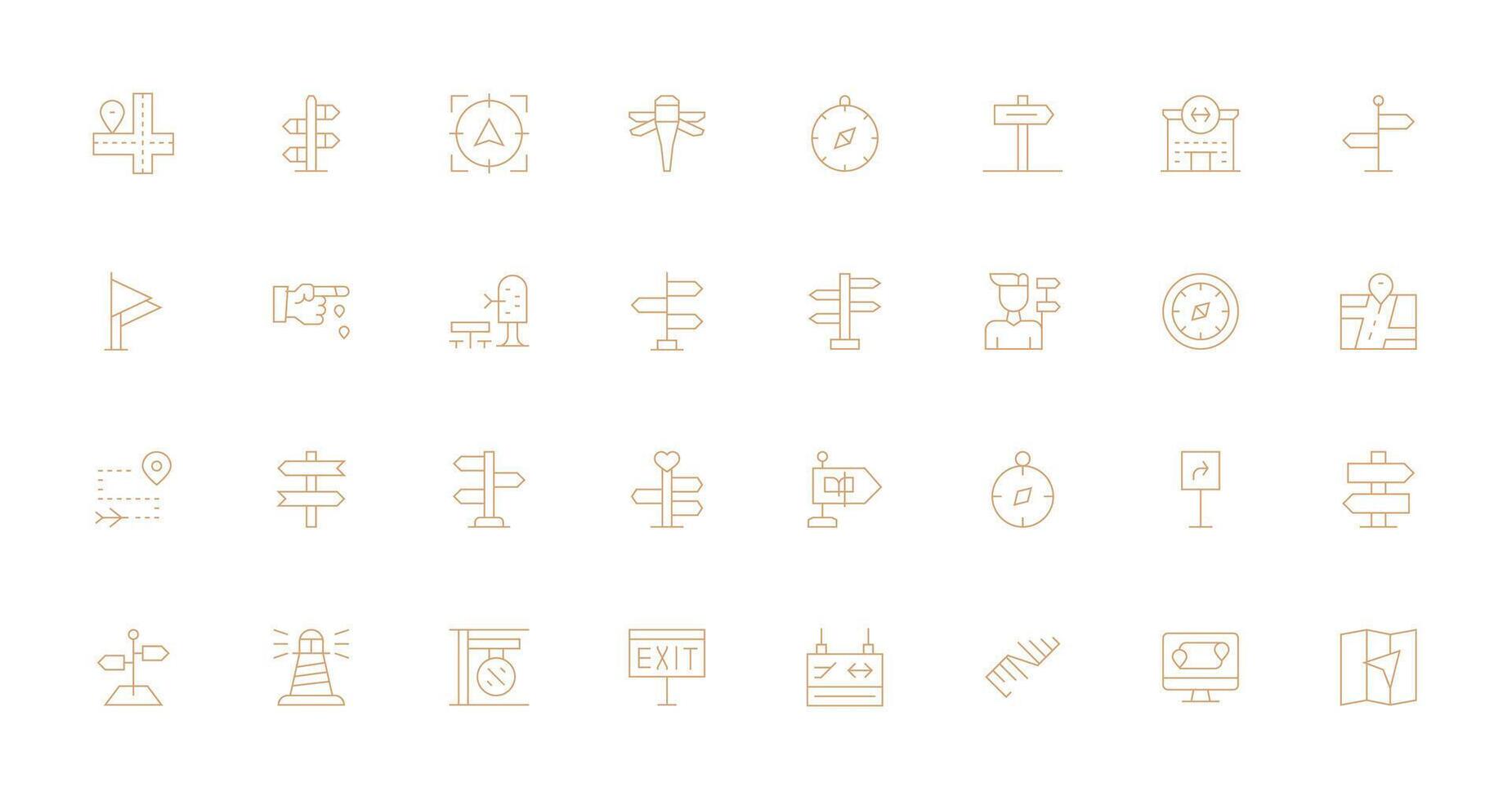 Wayfinding Design Icons featuring 32 in Thin Line Style Icon Pack for Various Themes vector