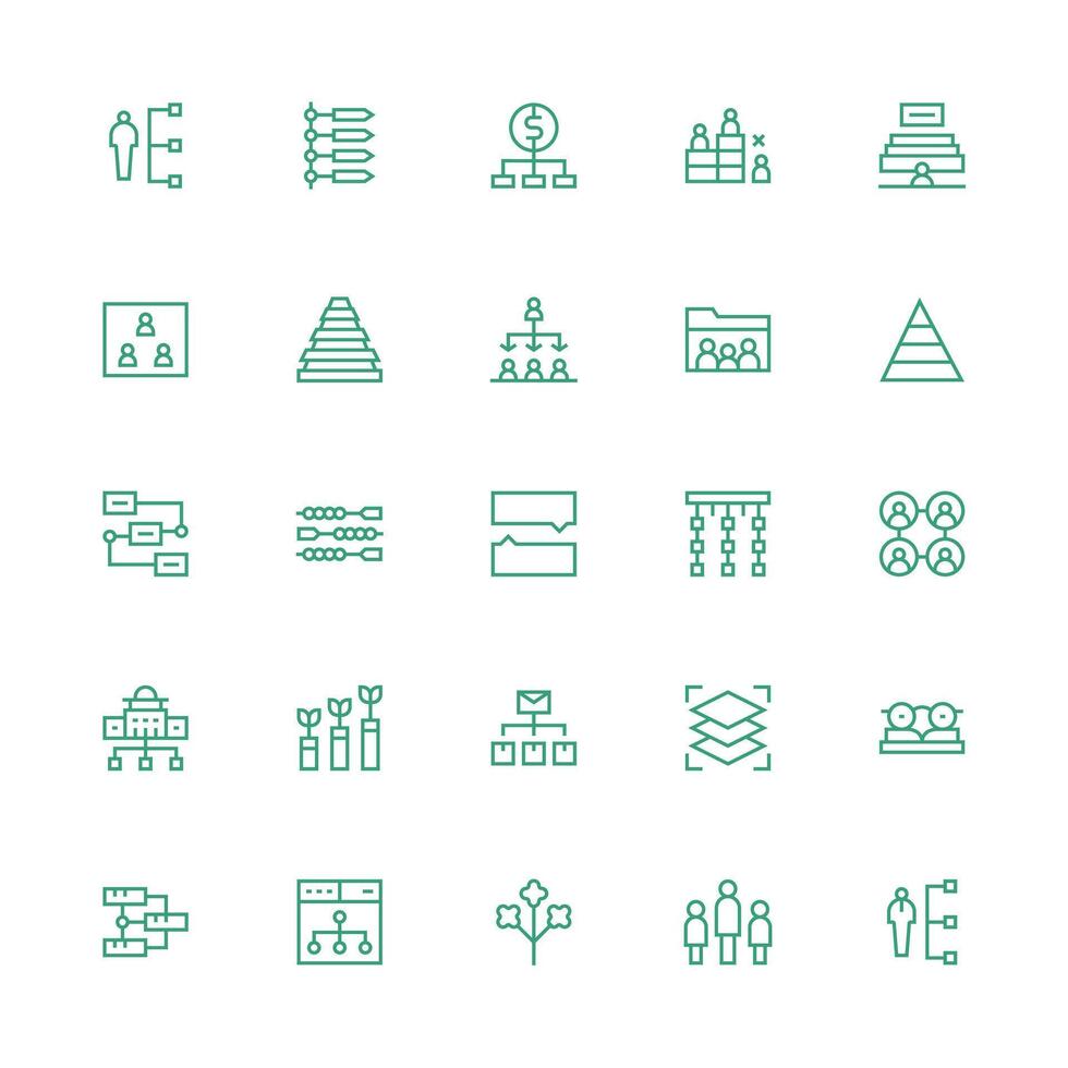 Hierarchy Icon Set with 25 Medium Stroke Outline Graphics Smart Icon Collection Free Vector