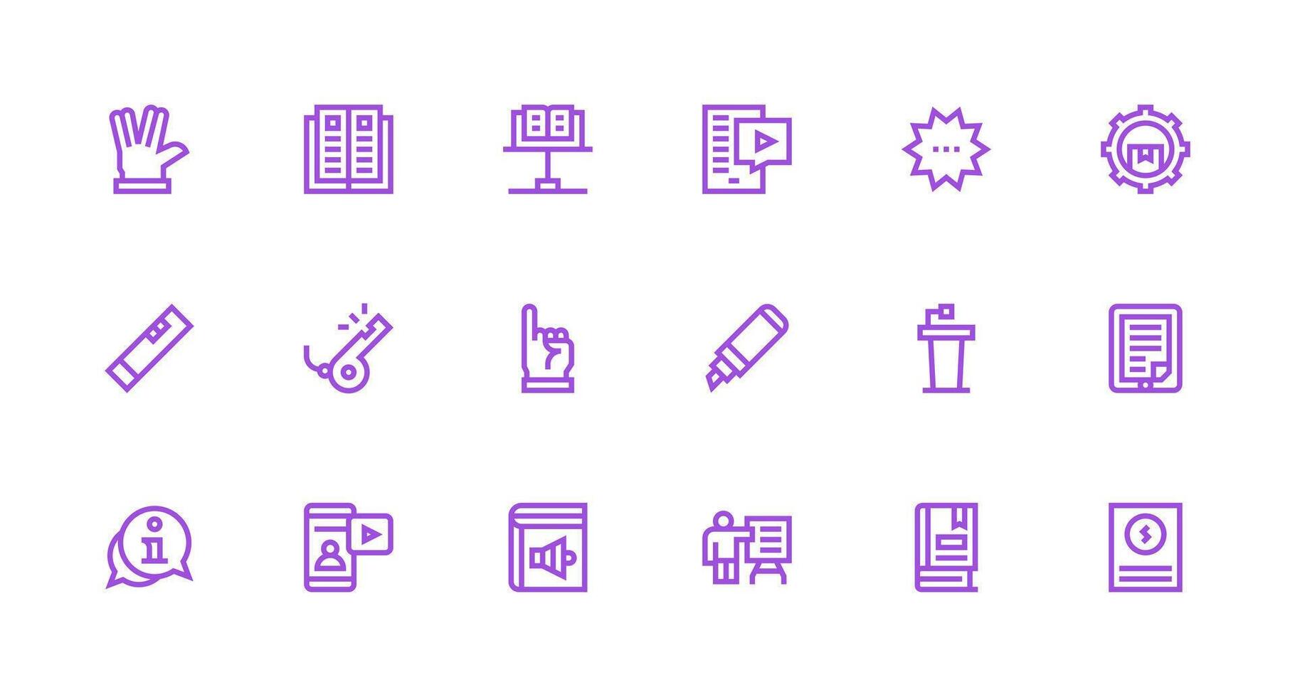 Instructional featuring 18 Icons in Strong Stroke Line Design All-Purpose Icon Design Pack vector