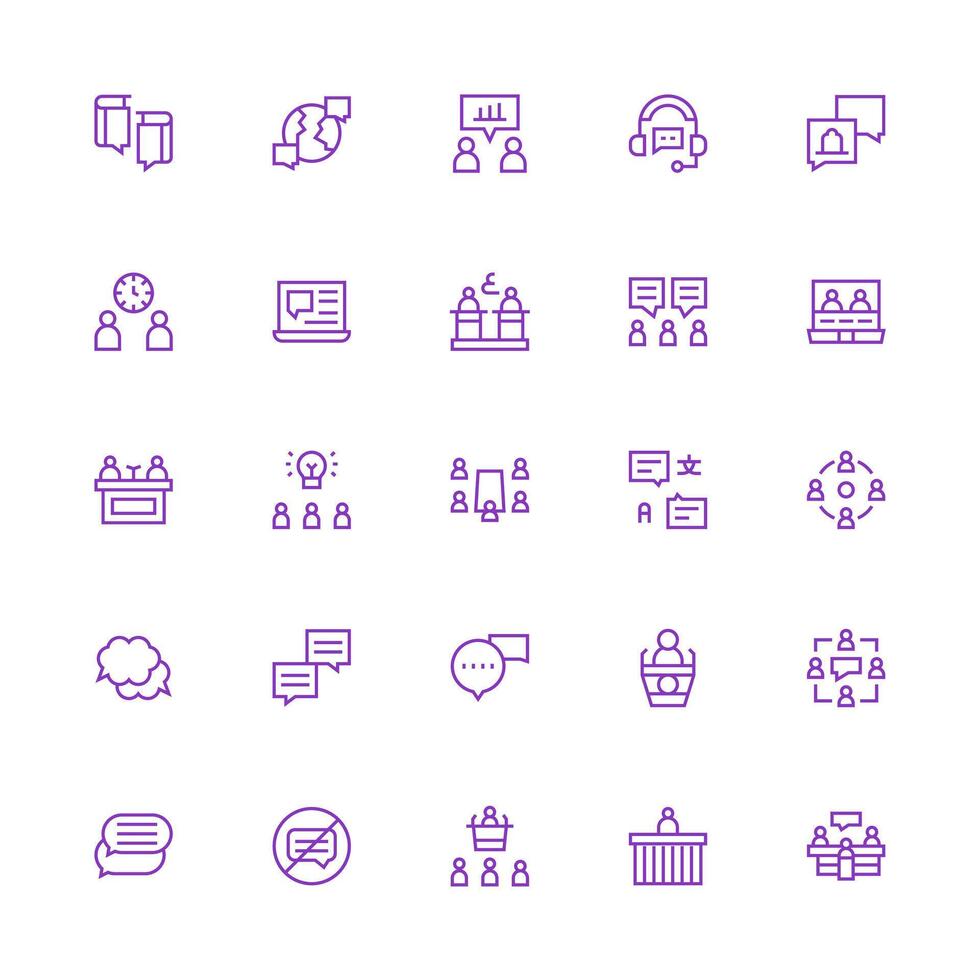Medium Stroke Outline Style Discussion Icons with 25 Vectors Simple Icons for Interface and Wireframes