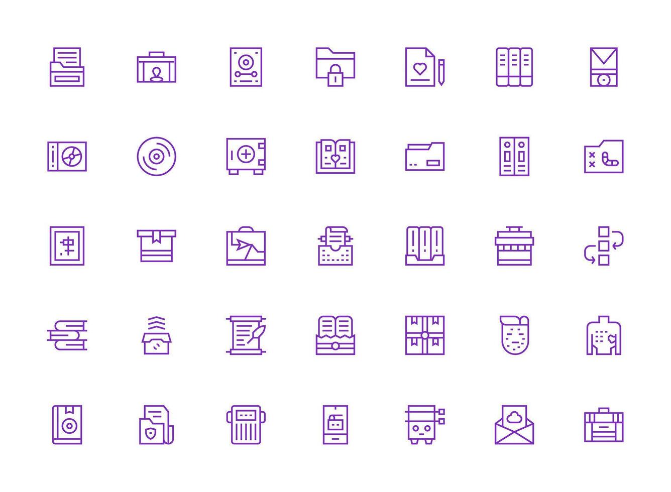 Archive Design Icons featuring 35 in Regular Clean Line Style Multi-Purpose Icon Set vector