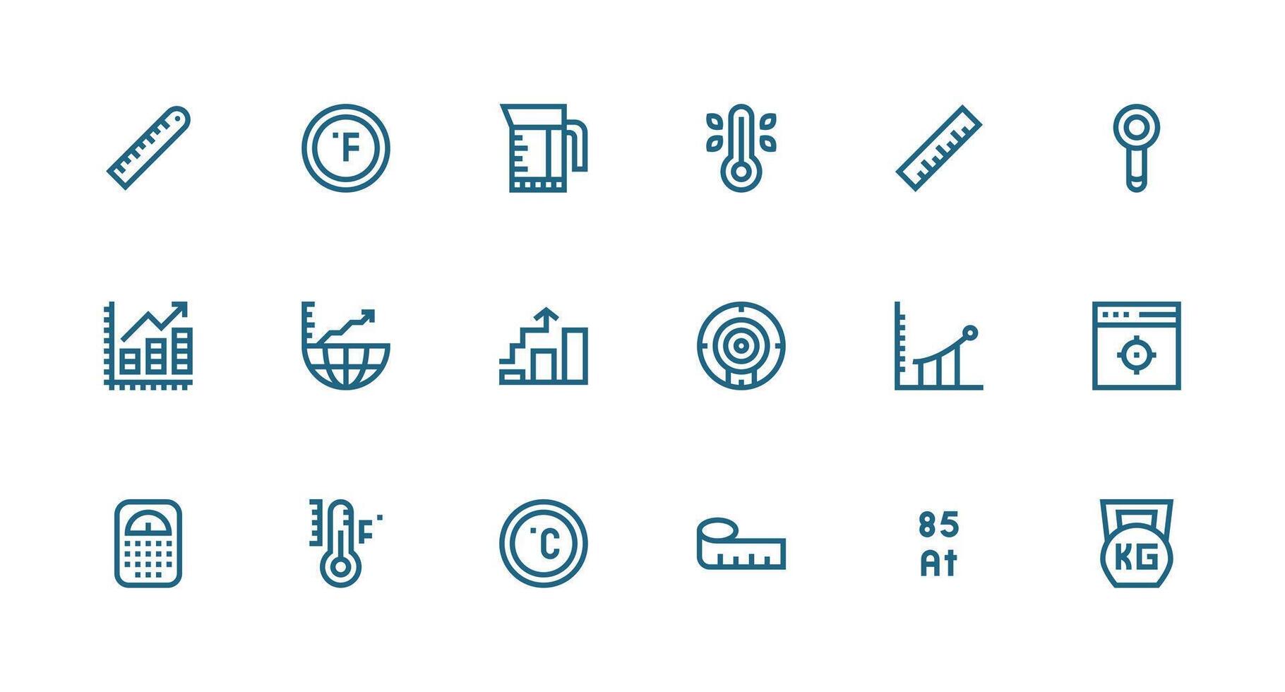 Metric Design Icons featuring 18 in Strong Stroke Line Style Icons Built for Visual Consistency Pack vector