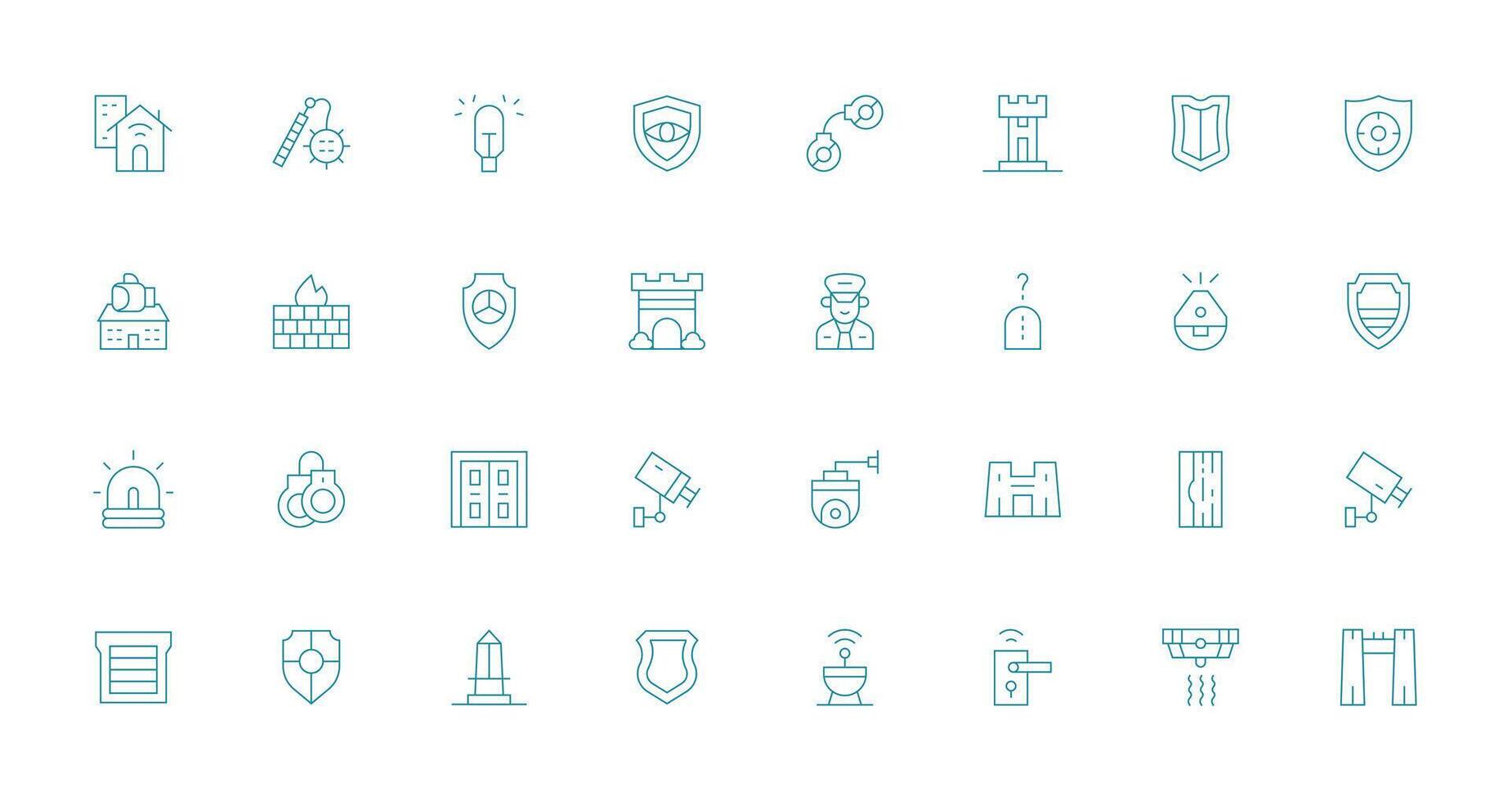 Security System Icon Set with 32 Thin Line Graphics Responsive Icon Set for Flexible Layouts Free Vector