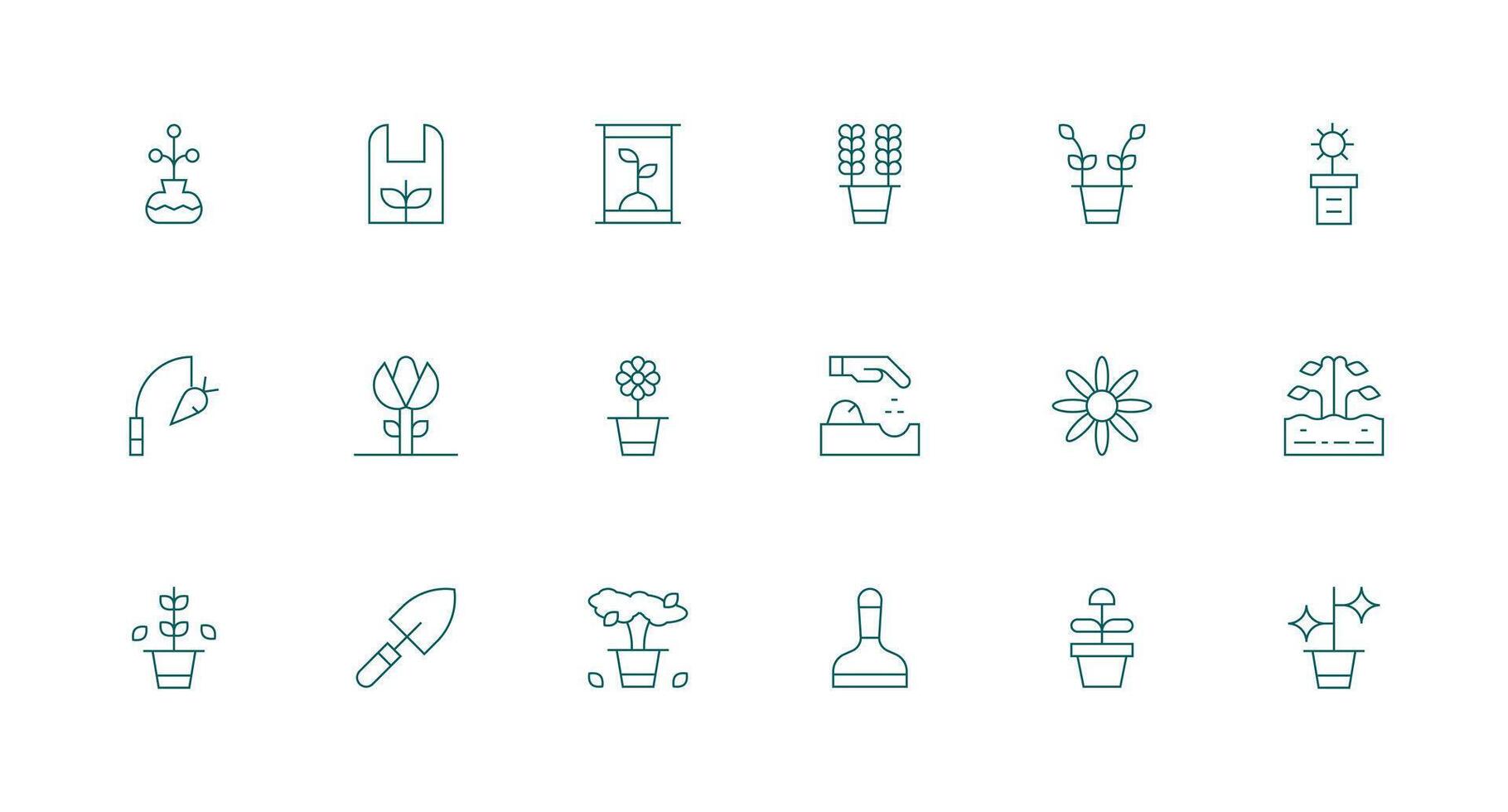 Gardening featuring 18 Icons in Minimal Line Design Fully Editable Icon Set for Web vector