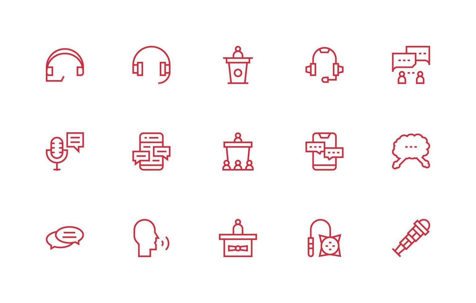 Talk Icon Set with 15 Regular Line Graphics Icons Built for Visual Consistency Pack vector