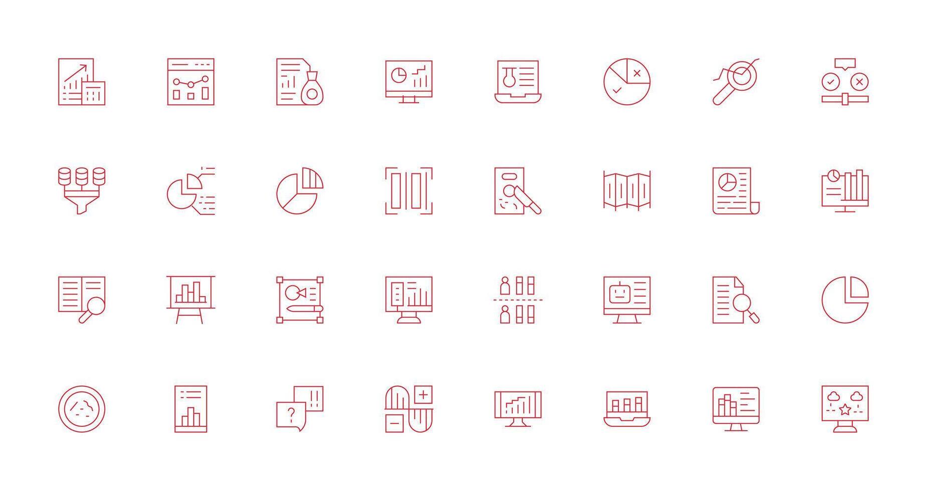 Data Analysis Design Icons featuring 32 in Thin Line Style Well-Structured Icons for Creative Use vector