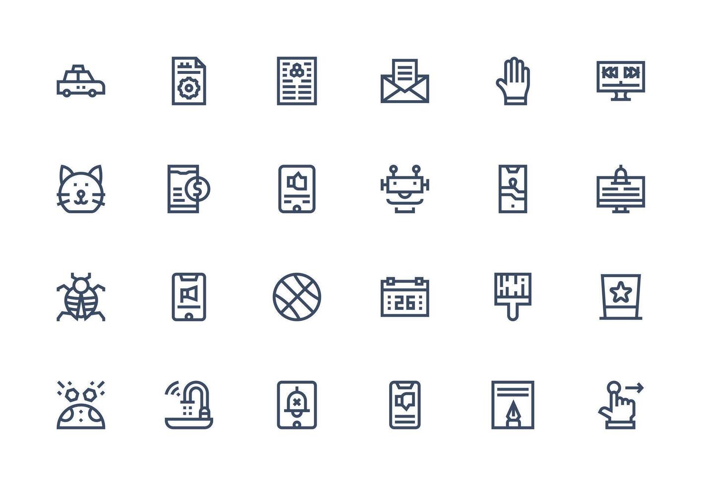 24 Thick Line Line Designs for App Icons Simple Icons for Interface and Wireframes vector