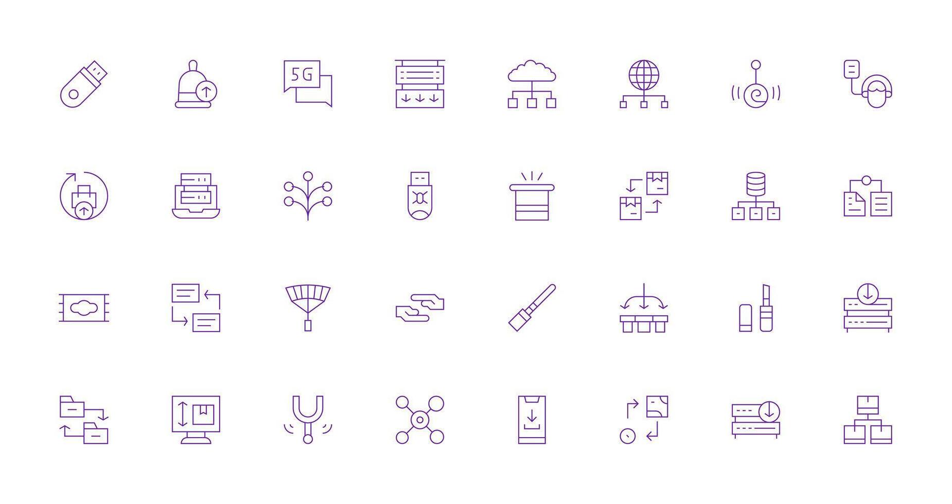 Data Transfer Design Icons featuring 32 in Thin Line Style Icon Set for Apps Free Vector