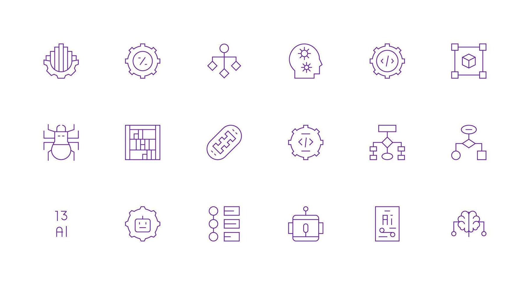 Algorithm Visual Pack containing 18 Minimal Line Icons Interface Icon Collection Free Vector