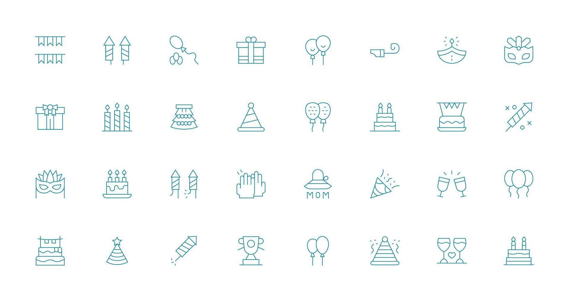 Celebration Icon Set with 32 Thin Line Icons Scalable Icons for Cross-Platform Interfaces vector