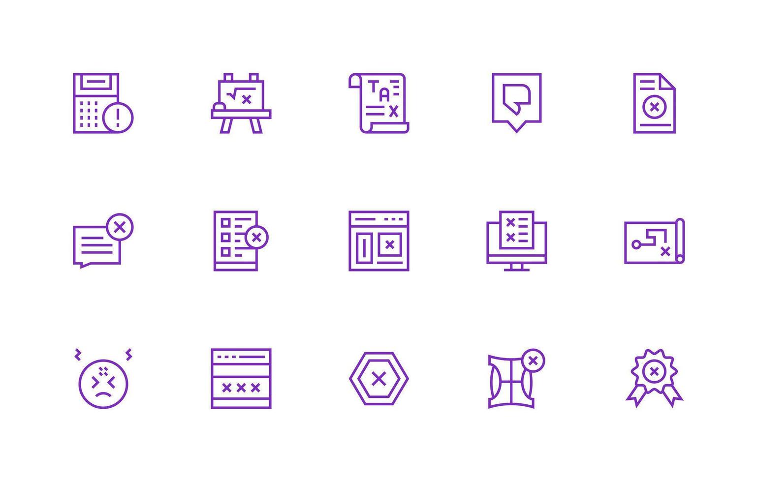 15 Incorrect Icons in Regular Line Aesthetic Full Icon Library for UI Designers vector