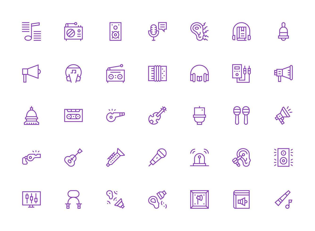 Sound Design Icons featuring 35 in Regular Clean Line Style Dashboard Icon Series vector