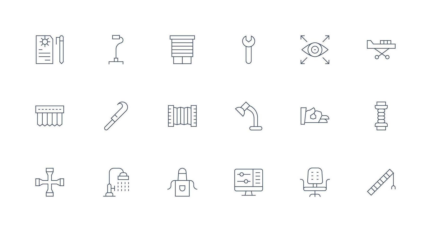 Adjustable Icon Set with 18 Minimal Line Graphics Scalable Icons for Cross-Platform Interfaces Free Vector
