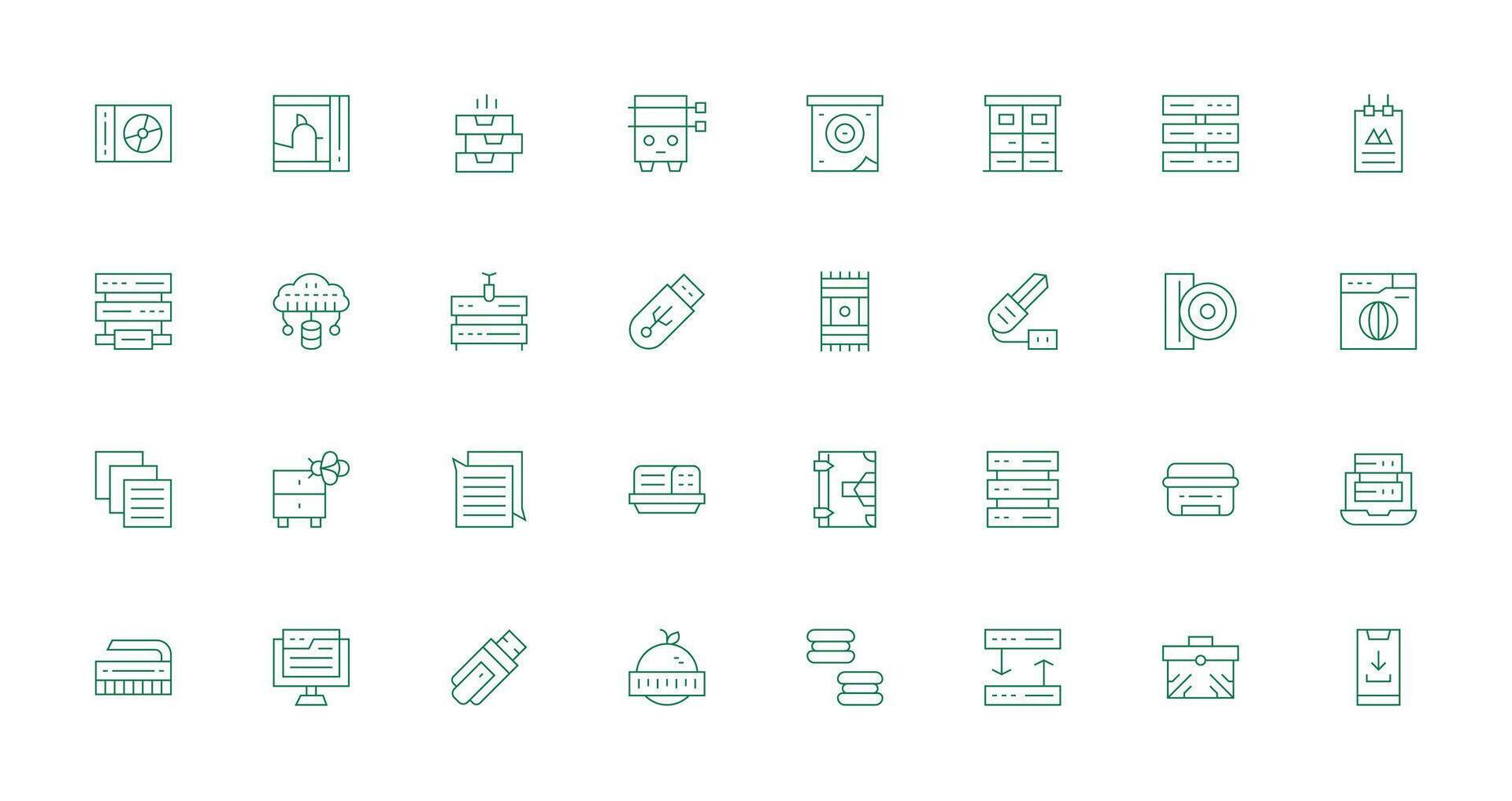32 Thin Line Style Icons from Data Storage Collection Editable Icon Collection Free Vector