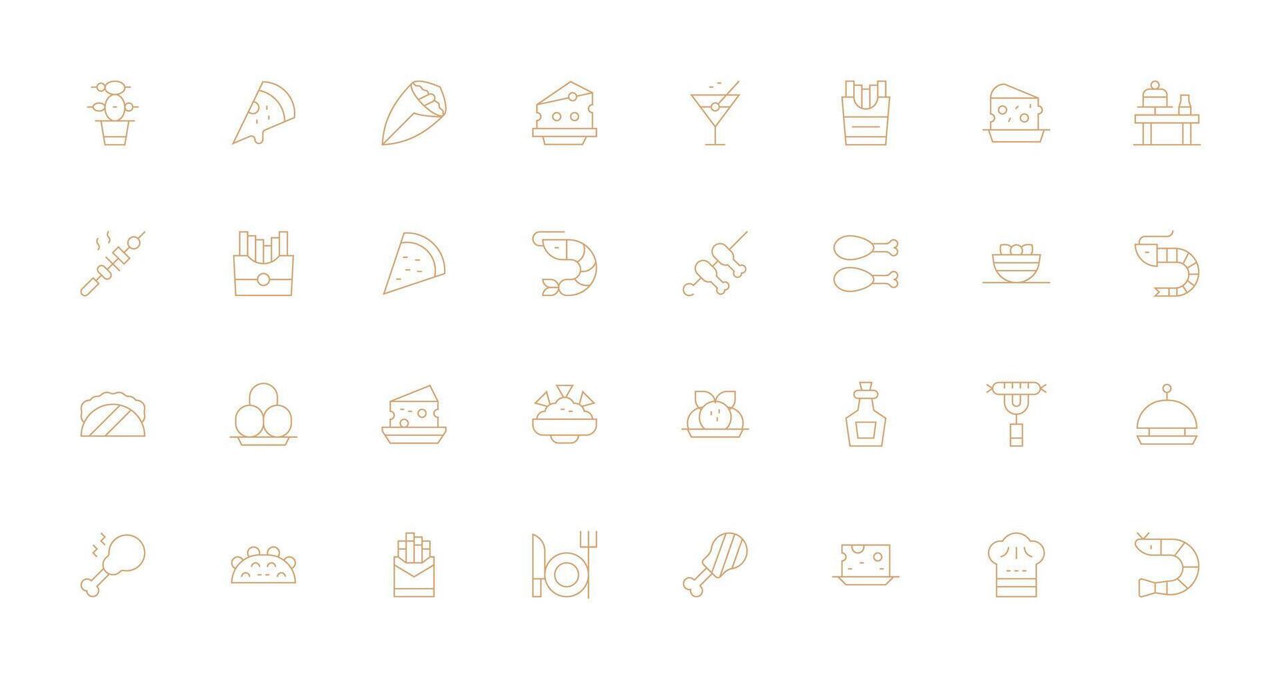 Appetizer Design Icons featuring 32 in Thin Line Style Complete Icon Bundle for Web Design Free Vector