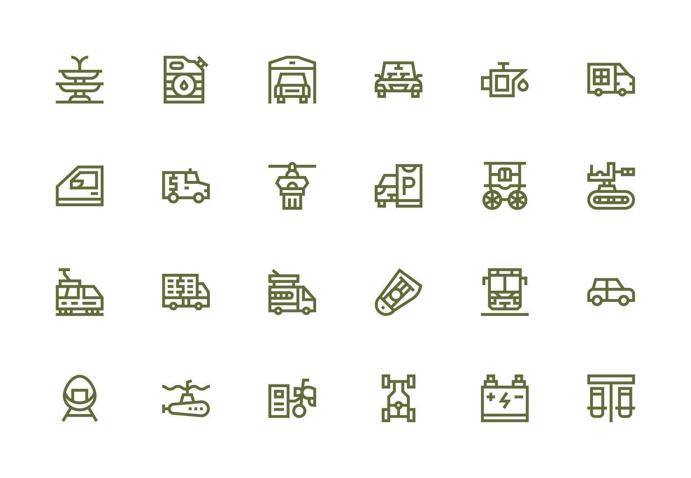 Vehicle Design Icons featuring 24 in Thick Line Line Style Balanced Icon Set for Functional Design Free Vector