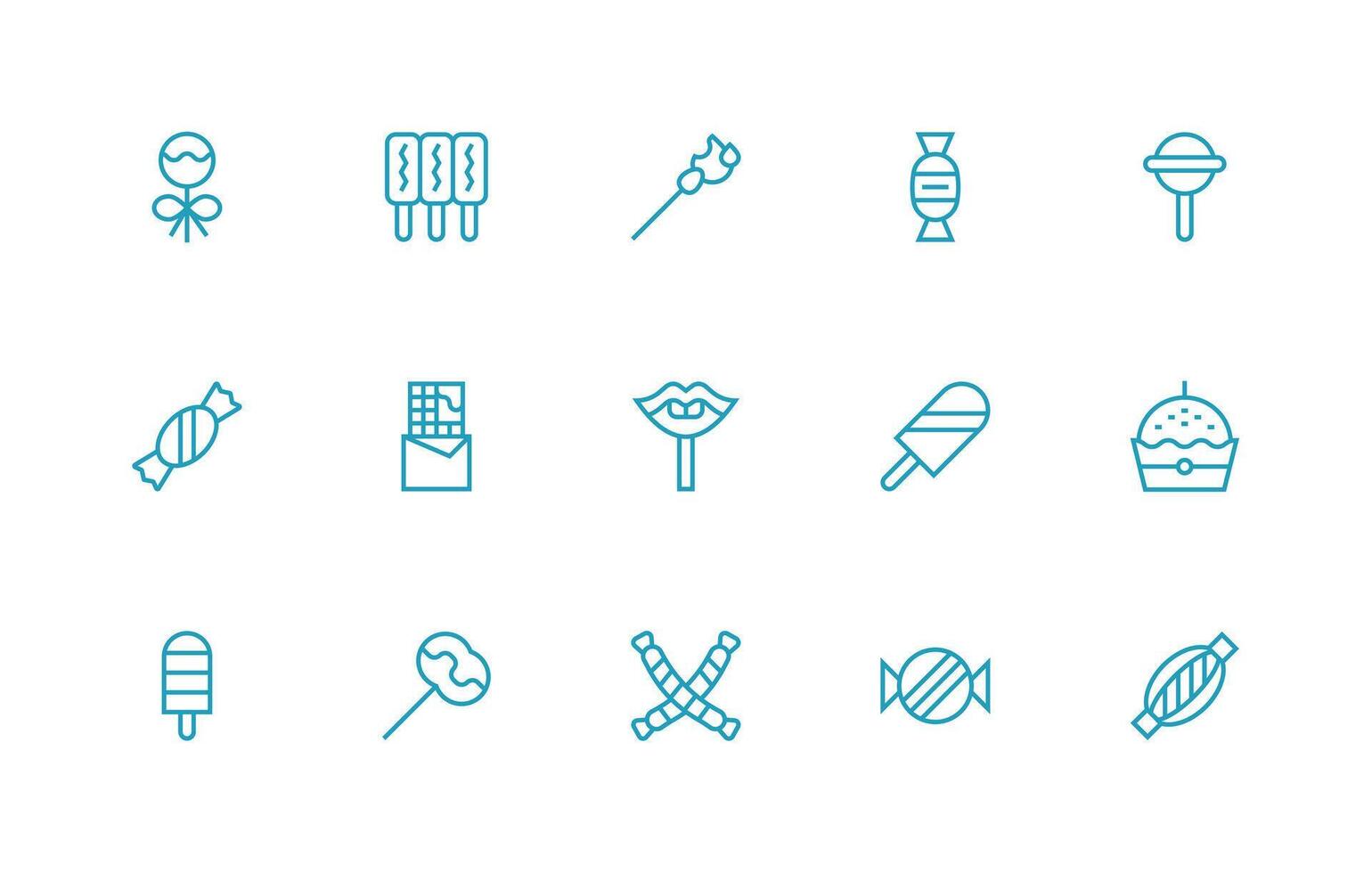 Candy featuring 15 Icons in Regular Line Design Sharp Icons for Presentations Free Vector