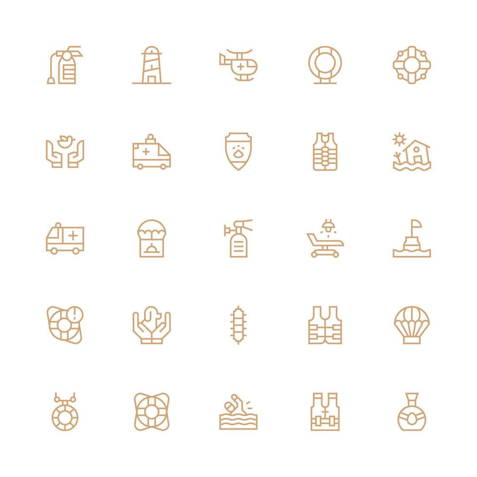 Rescue Icon Set with 25 Medium Stroke Outline Graphics Customizable Icon Series for Mobile Screens Free Vector