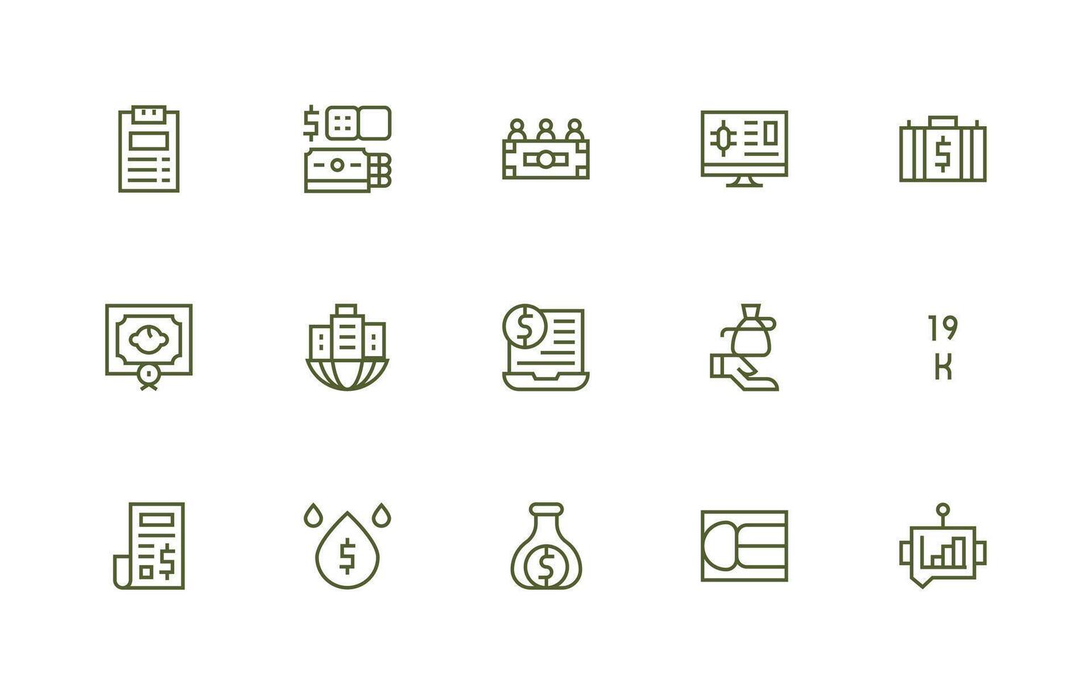 Regular Line Style Finance Icons with 15 Vectors Clean Icon Collection for Web Use