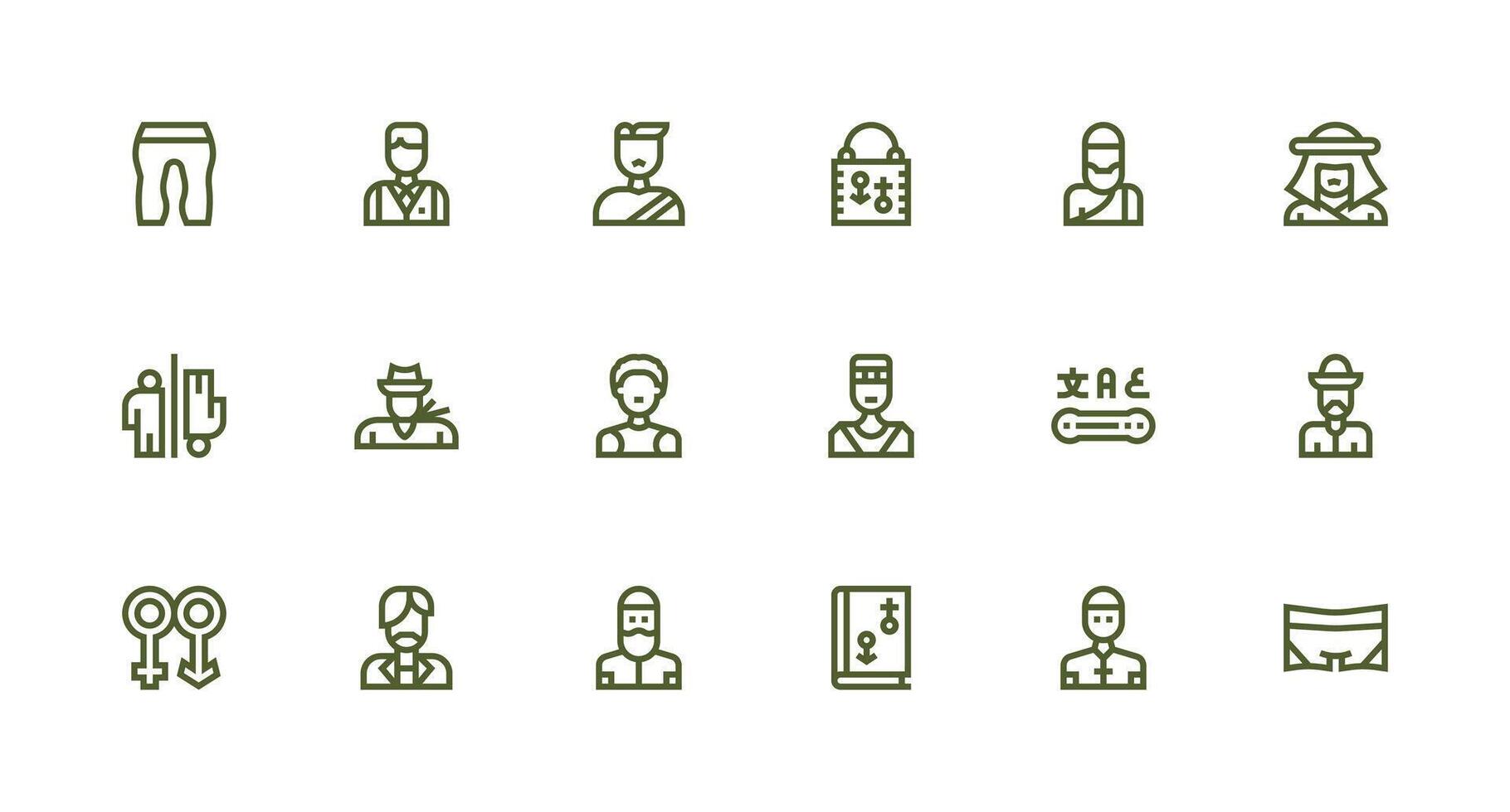 18 Strong Stroke Line Style Icons from Male Collection Minimal Icon Set for Interface Projects Free Vector