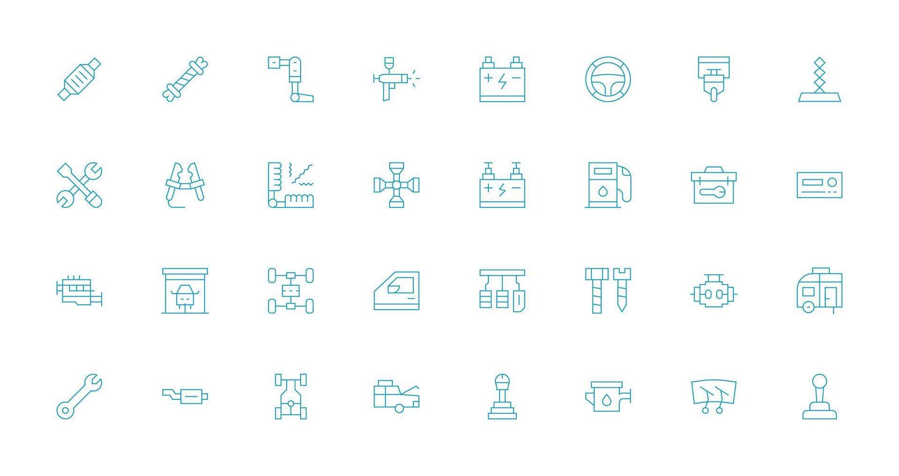 Automotive Visual Pack containing 32 Thin Line Icons Quick Access Icons for UI Development Free Vector