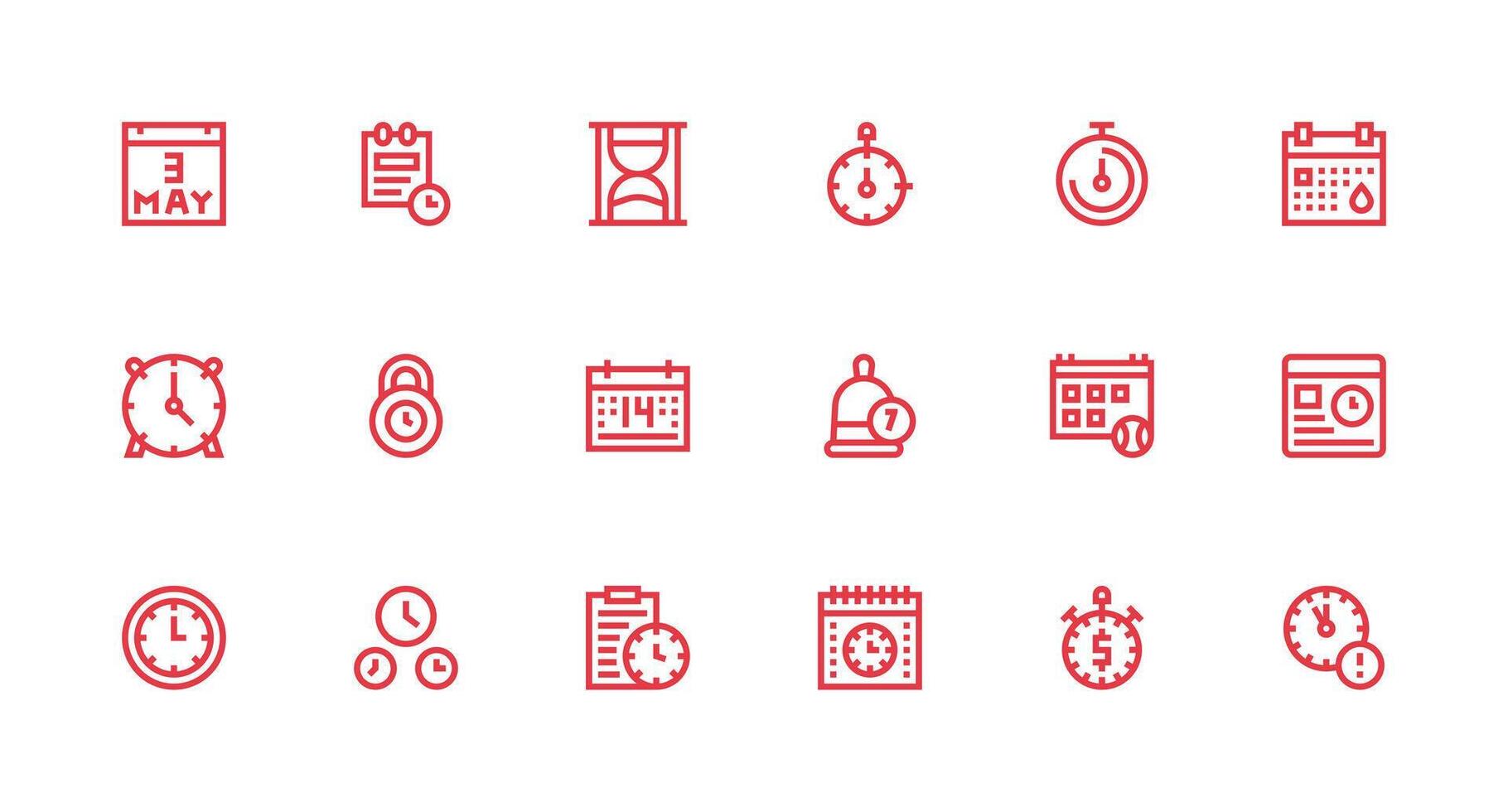 Deadline Icon Set with 18 Strong Stroke Line Graphics Clean Icon Collection for Web Use Free Vector