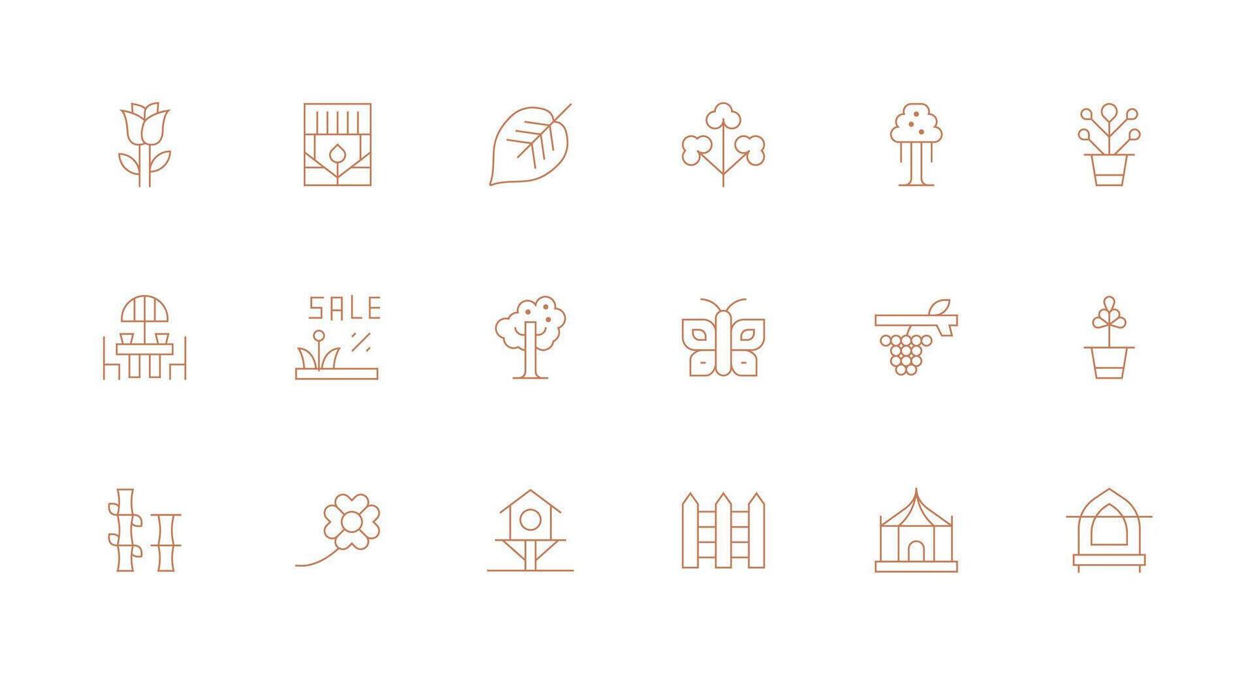 18 Icons for Garden in Minimal Line Format Interface Icon Collection Free Vector