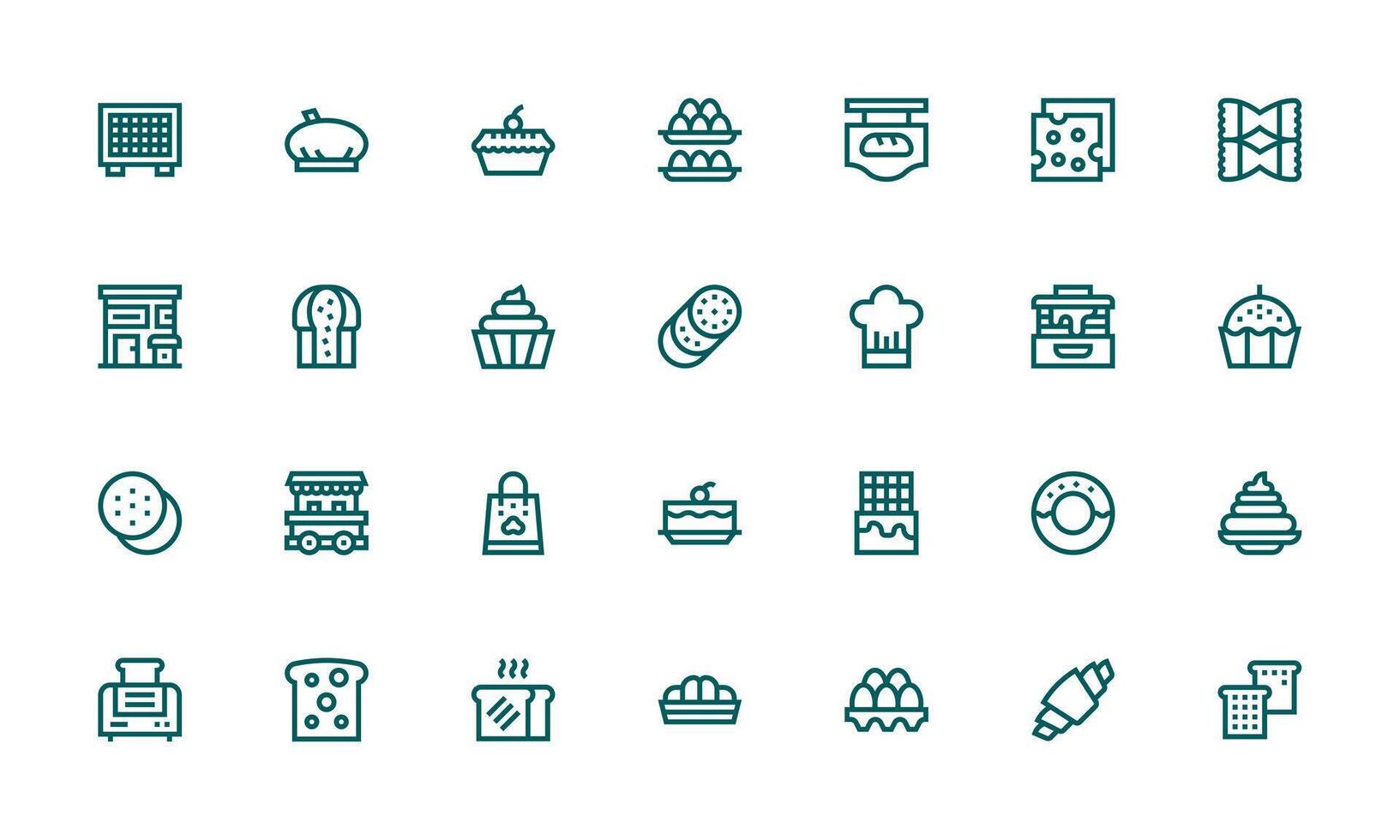 Bold Line Icons from Bakery Set with 28 Vectors Clear and Concise Icon Set Collection Free Vector