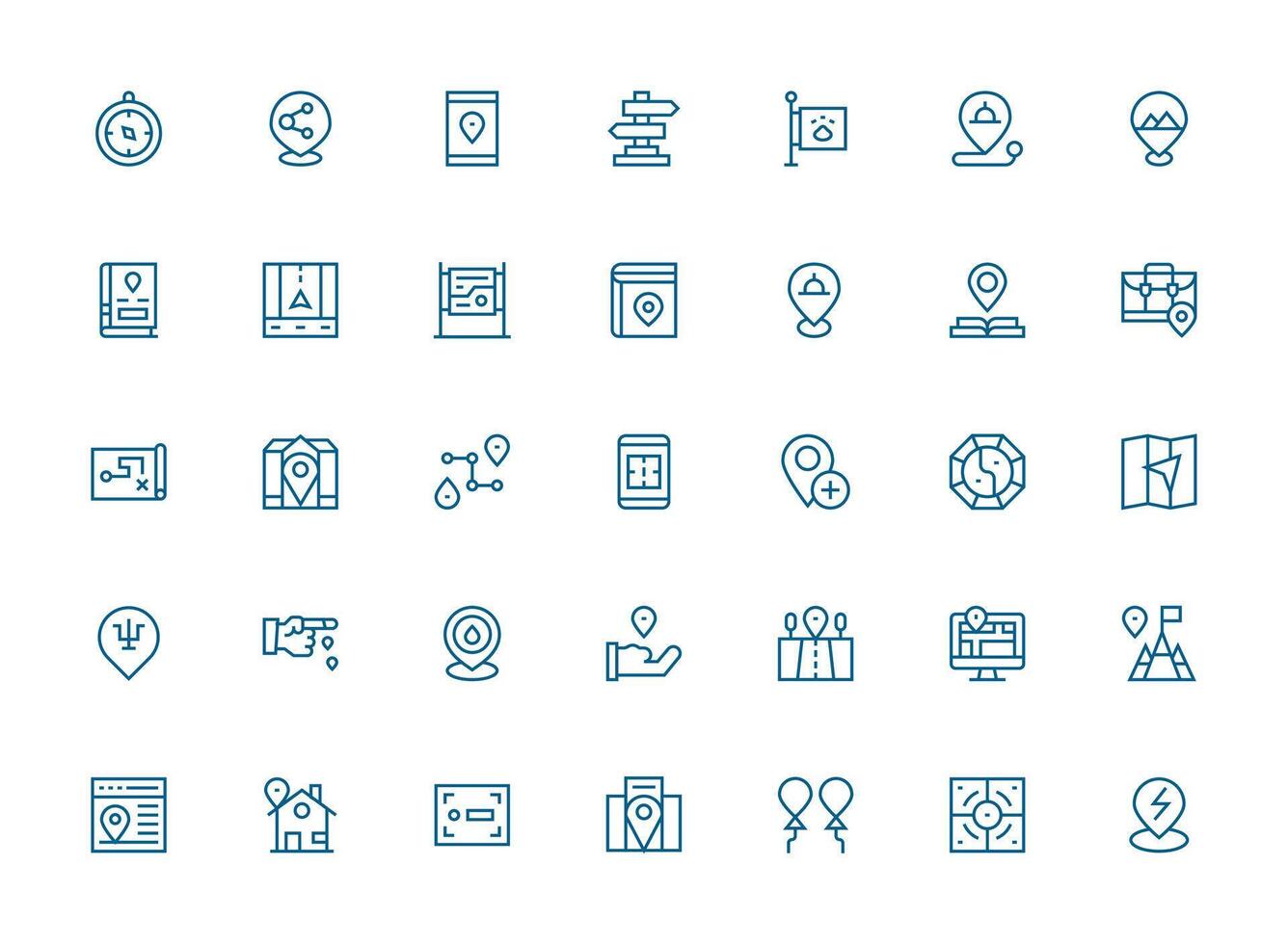 Regular Clean Line Icons from Map Set with 35 Vectors Simple Icons for Interface and Wireframes Free Vector