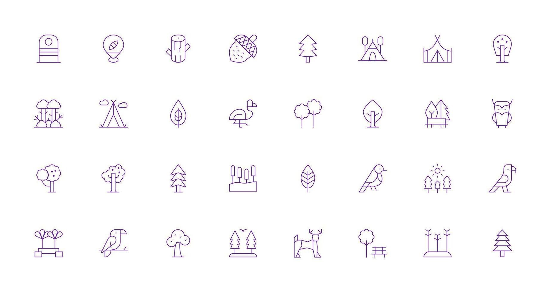 Nature Reserve Visual Pack containing 32 Thin Line Icons Simple Icons for Interface and Wireframes vector