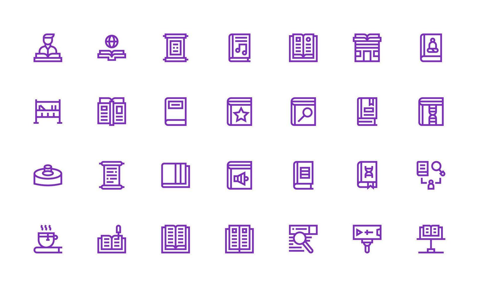 Library including 28 Bold Line Illustrations Scalable Icons for Cross-Platform Interfaces vector