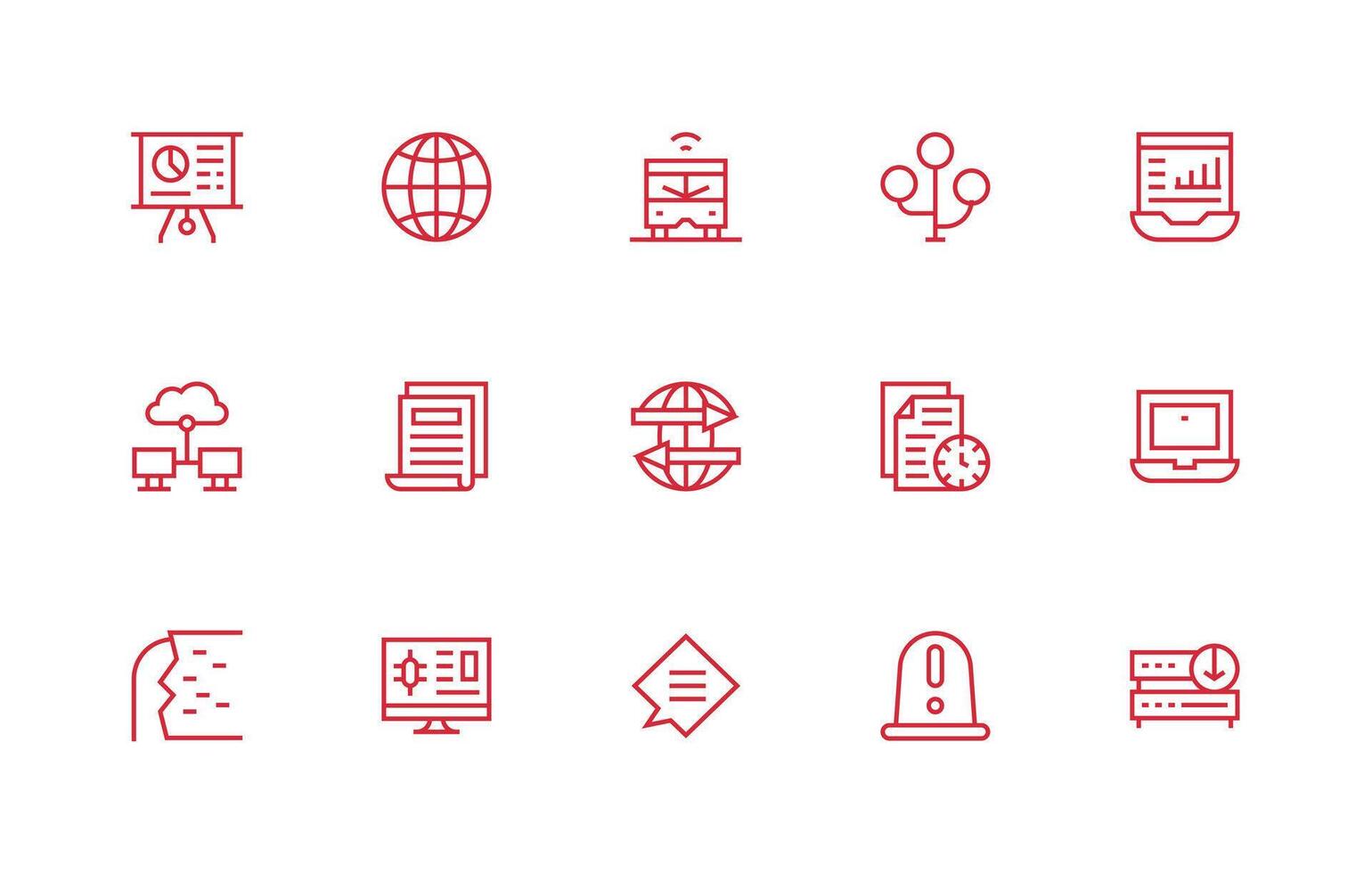 Data Visual Pack containing 15 Regular Line Icons Icon Set for Web vector