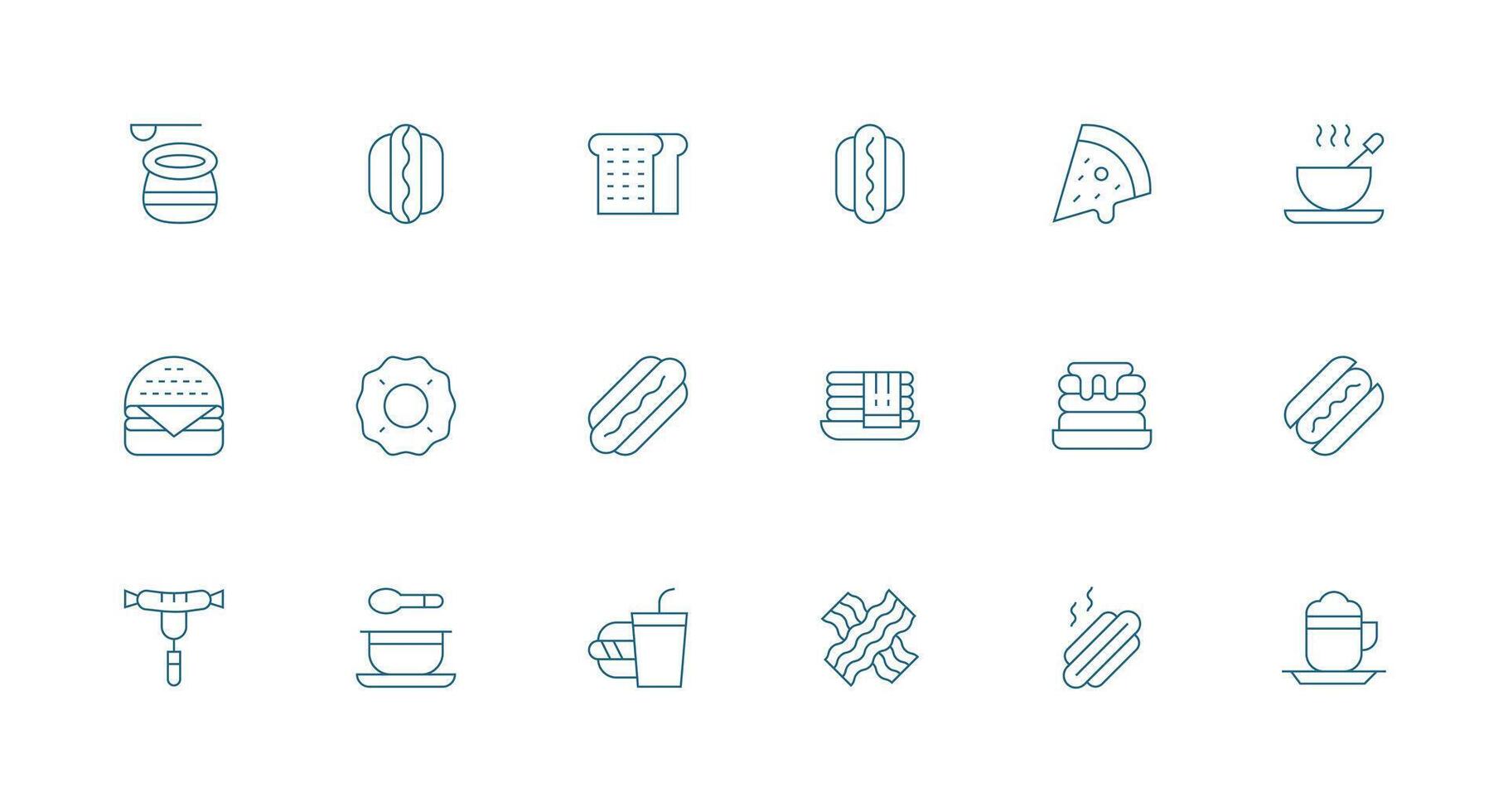 Diner Design Icons featuring 18 in Minimal Line Style High-Resolution Icons for Any Platform vector