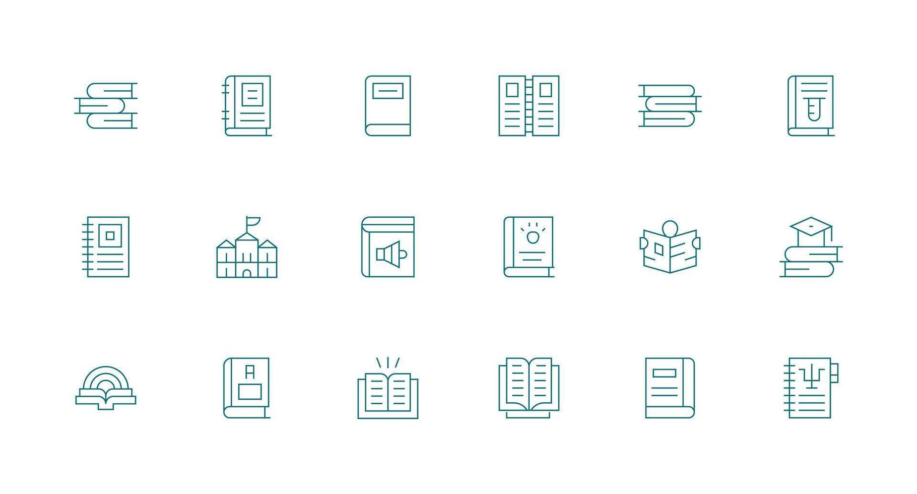 Minimal Line Icons from Textbook Set with 18 Vectors Complete Icon Bundle for Web Design Free Vector