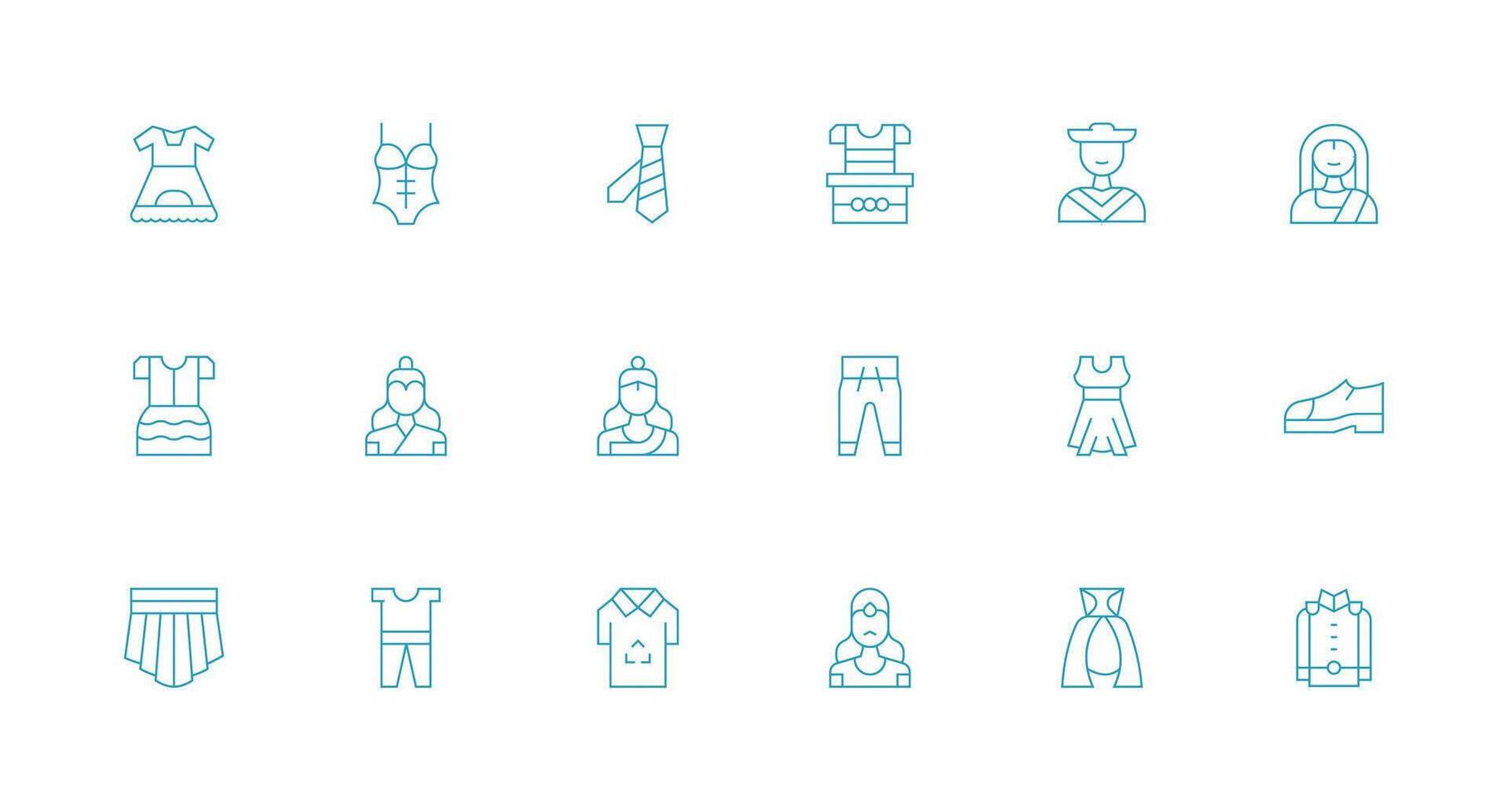 Minimal Line Style Dress Icons with 18 Vectors Scalable Icons for Cross-Platform Interfaces