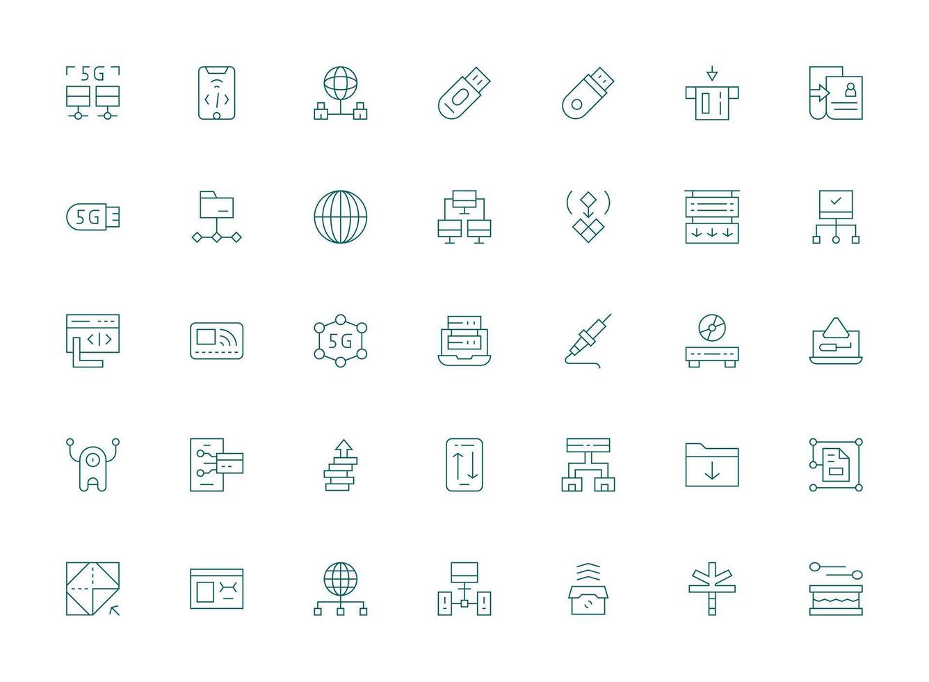 Light Line Icons from Data Transfer Set with 35 Vectors Organized Glyph Icons for Fast Design